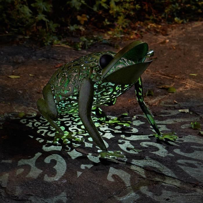 La grenouille solaire est très eclairante la nuit. Economisez avec notre option de livraison gratuite. Le bassin en céramique vernissée avec gargouille en forme de grenouille est une fontaine gazouillante qui fonctionne à l'énergie solaire. La fontaine solaire grenouille utilise une pompe basse tension, fonctionnant à l' énergie solaire, captée par le panneau solaire déporté. De nombreux autres produits vous attendent sur la boutique.