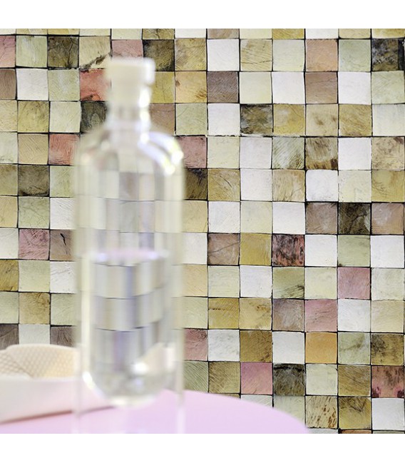 Disponible en dalles formées de petits carrés de 2 ou 3 cm de côté.